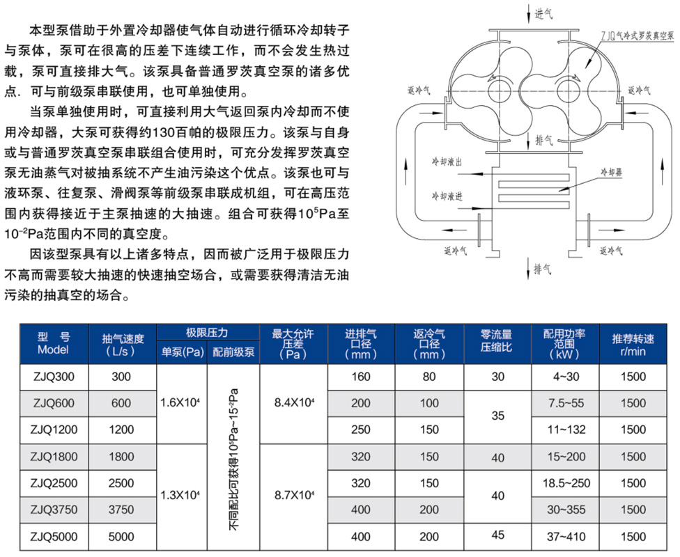 ZJQ氣冷式直排大氣羅茨真空泵系列 / ZJQ氣冷式羅茨真空機(jī)組