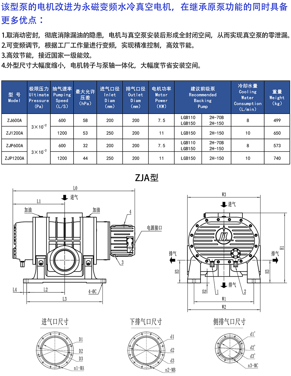 ZJA.ZJPA永磁真空電機羅茨真空泵 / ZJ600A,ZJ1200A,ZJP600A,ZJP1200A